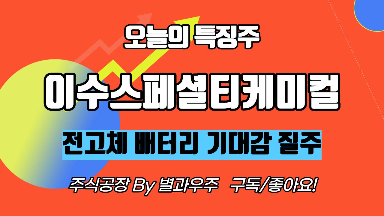 이수스페셜티케미컬은 전고체 배터리 소재 테마를 대표하는 성장주로, 금일 투자자들의 관심이 폭발했습니다. 이날 거래대금만 약 2,050억 원을 기록하며 시장의 뜨거운 주목을 받았고, 주가는 단숨에 15% 가까이 급등했습니다. 특히 전일에 이어 이틀 연속 급등세를 보이며, 거래소에서 상승률 상위권에 오를 정도로 모멘텀이 강했습니다. 성장 기대감이 높은 테마주이지만, 동시에 정밀화학 기반의 실체를 갖춘 기업이라는 점이 부각되어 시장에서 각광을 받고 있습니다.