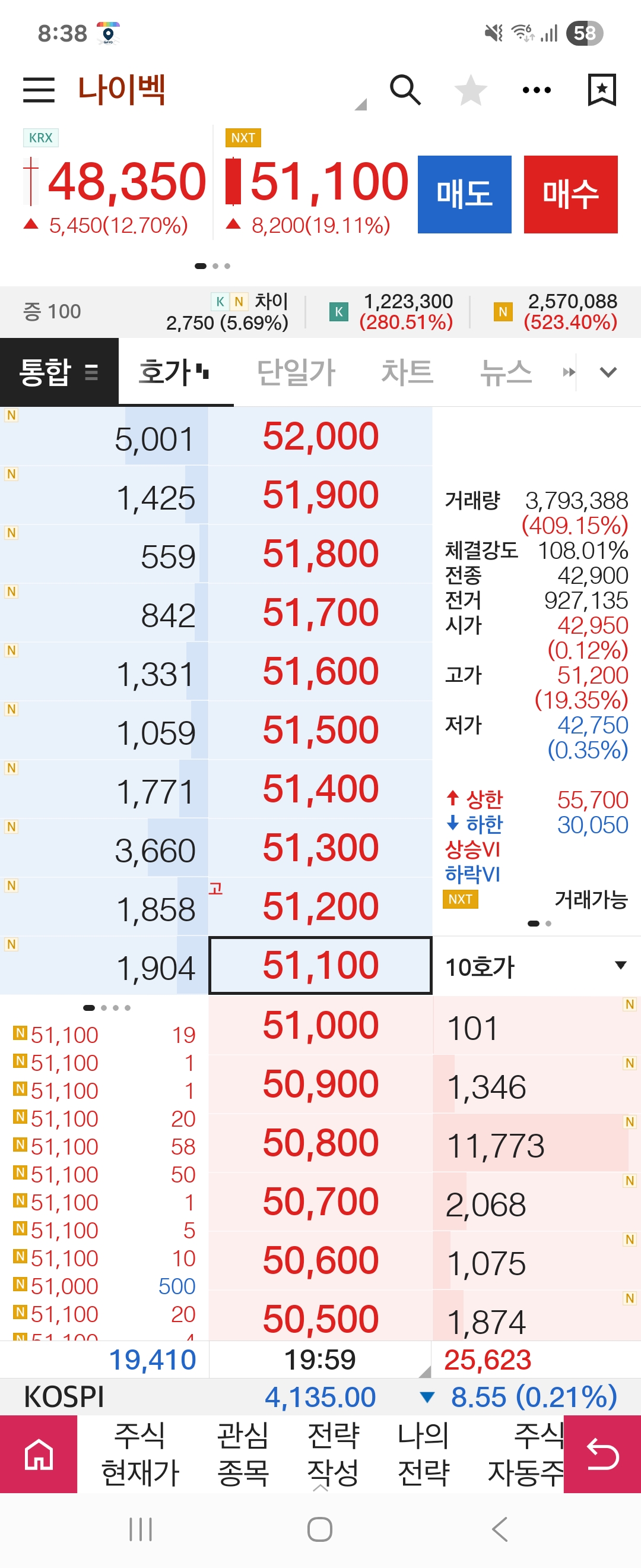 | NXT (시간외) | 51,100원 | 정규장 종가 대비 추가 상승, 강한 매수세 지속 |