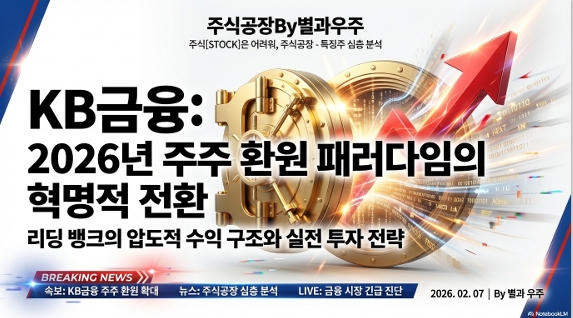 [관심종목 선정 이유] 2025년 사상 최대 실적(5.84조 원)을 통해 이익 체력의 한계를 돌파하였으며, 2026년 2.82조 원이라는 압도적 규모의 주주 환원 계획은 주가의 하단을 강력하게 지지하는 '안전 마진' 역할을 수행함. 특히 PBR 0.96배는 글로벌 스탠다드 관점에서 여전히 저렴하며, 기관 중심의 수급 유입은 주가의 질적 상승을 보장함.