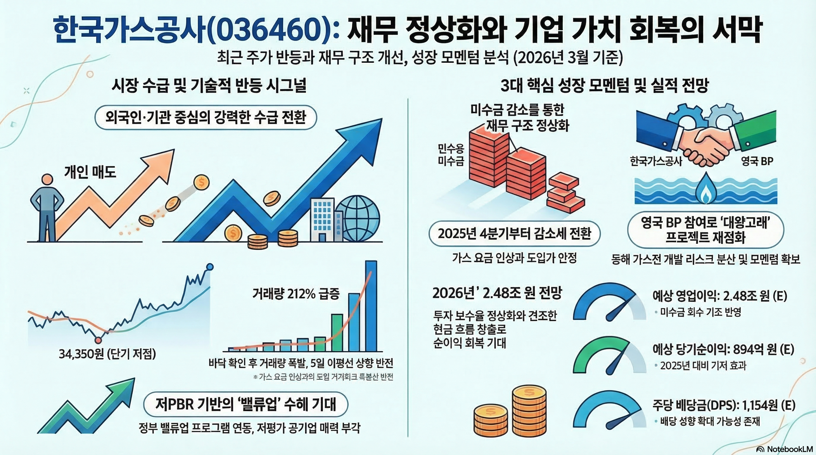 - 공격적 시나리오: 밸류업 프로그램의 강력한 추진으로 공기업 배당 성향이 40% 수준으로 조기 복귀하거나, 동해 가스전에서 유의미한 시추 성과가 발표될 경우임. 이 경우 2024년 고점인 60,000원대를 향한 추세적 랠리가 가능함. 목표가 설정 논리는 BPS 대비 PBR 0.6배 수준인 55,000원선 적용.