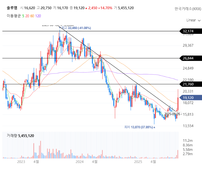 | 오늘 시황 | 19,120원 (+16.44%), 장중 20,000원 돌파 시도. |